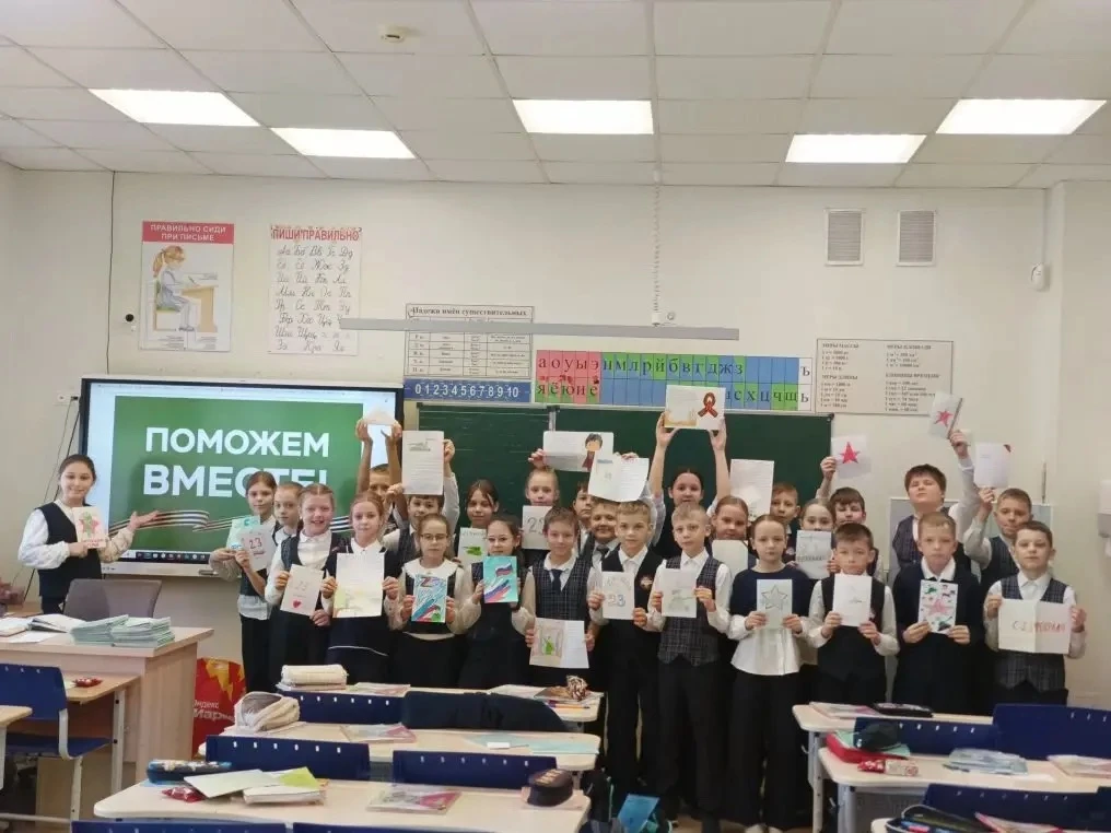 Дарья лично провела серию мастер-классов для ребят — от самых маленьких гимназистов до выпускных классов. Вместе они создавали не просто открытки, а настоящие весточки с малой родины. Каждый лепесток, каждая цифра на аппликации — всё было пропитано заботой.
